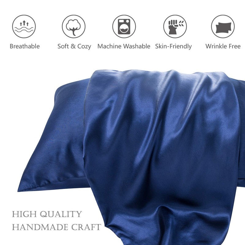 HandSun Satin Pillowcase for Hair and Skin, 2 Pack Satin Pillowcase with Envelope Closure, Queen Size (20x30 Inches) Navy