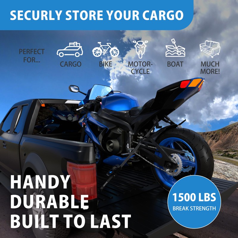 - Time Saver - With the self winding ratchet straps being heavy duty at a break strength of 1500 pounds, they are the perfect retractable straps for any occasion. Whether you're in your truck hauling your boat trailer or just ratcheting things down while moving, these are the go to retractable rachet strap for any occasion