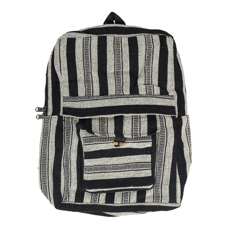 Handwoven Nepalese Front Pocket Hippy Style Cotton Backpack (Black & White)