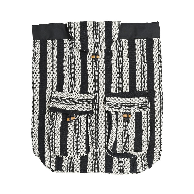 Handwoven Nepalese Two Pocket Cotton Hippy Style Backpacks (Black & White)