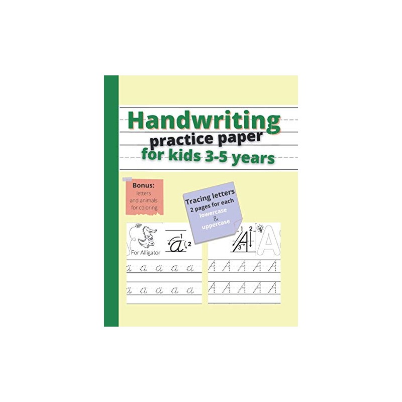 Handwriting practice paper for kids 3-5 years: Amazing ABC book for kindergartners | Tracing letters. 2 pages for each lowercase and uppercase letter | 110 pages, 8.5x11 inches
