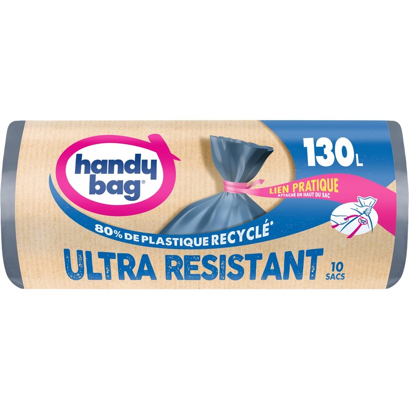 Handy bag Bin Liners, 130 L, Extremely Durable, 80% Recycled Plastic, Practical Cord Closure, 3-Ply, Leak-Proof, 80 x 120 cm