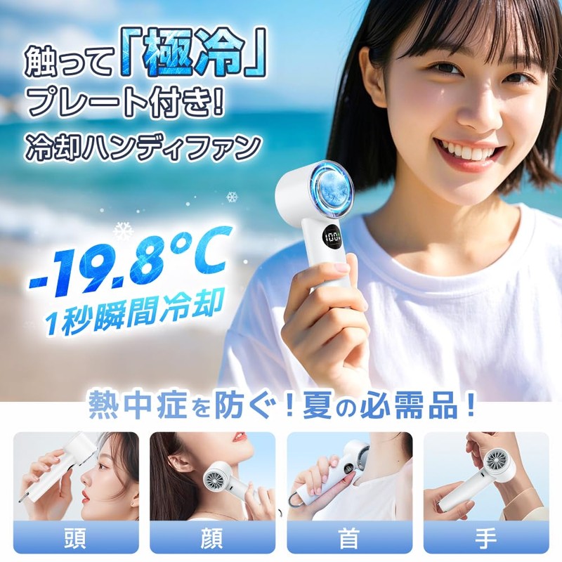 - (Equipped with a cooling plate) A cooling sensation in 1 second) Handy fan with cooling plate is equipped with a high-performance cooling plate that uses Peltier elements. Turn on and start cooling in just 1 second, and the moment you touch your skin will feel cool on your neck and wrist. Even if the handheld fan is unable to use the air conditioner, it strongly captures heat and is effective in preventing heat stroke in the midsummer. This handy fan cooling plate model has high power efficiency, and can be used to cool while saving power