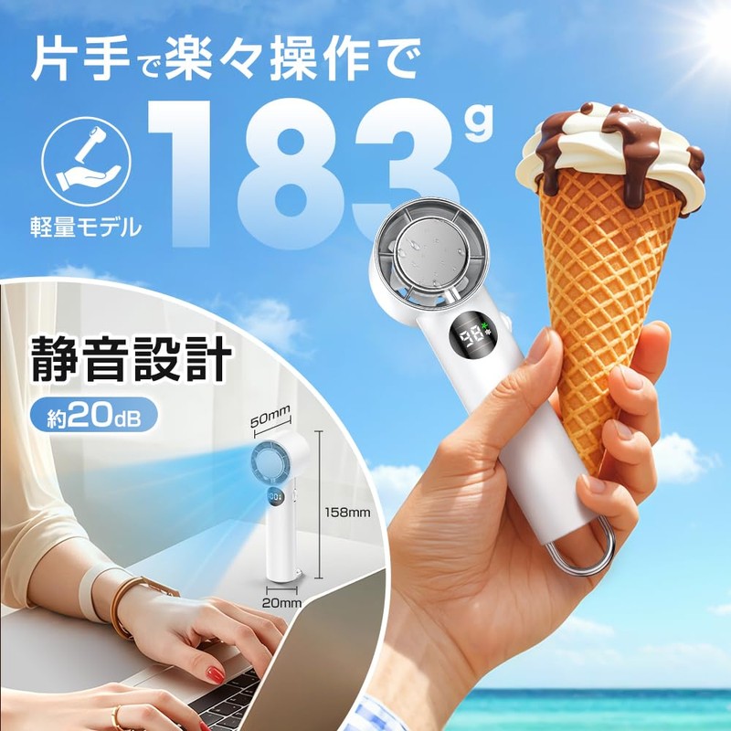- (6,800 mAh High Capacity Battery| Up to 29 Hours of Continuous Use) The handy fan is equipped with a large capacity of 6,800 mAh, so it can be used for a long time of up to 29 hours. The handy fan supports fast charging via USB Type-C and reduces charging time, so you can use it in a hurry. This handheld fan can be used for long distance travel, camping, outdoor work, etc