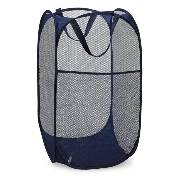 Handy Laundry Collapsible Mesh Foldable Hamper 14" x 14' x 24" Navy Blue