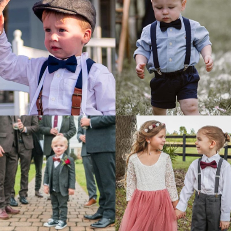 - This set includes a bow tie as well as elastic braces, which is individually adjustable and available in many colours. Ideal for festive events such as weddings and children's birthdays, also ideal as a gift to family and friends