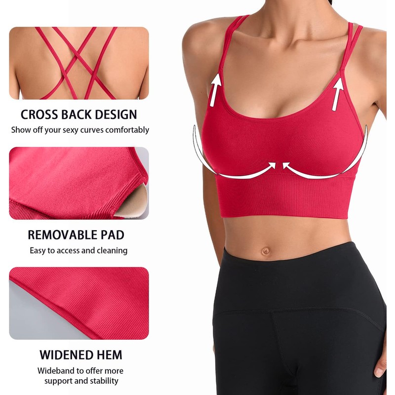 - Cute Crisscross Design: These crisscross athletic bras with straps on the back ensure that your perfect shape is always preserved. Strappy bralettes look very beautiful with high-waisted leggings, workout trousers or the top with high-waisted jeans and accessories