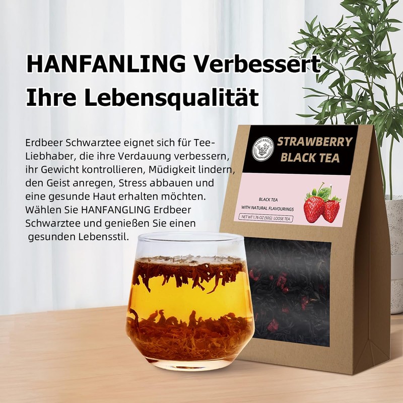HANFANGLING Strawberry Black Tea, Pack of 2, Natural Loose Tea, Promotes Metabolism, Nourishes the Skin, Fruity Strawberry Note Combined with Aromatic Black Tea
