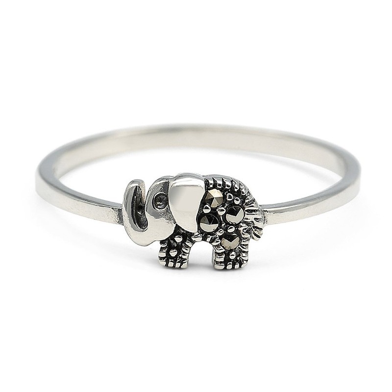 HANFLY 925 Sterling Silver Elephant Ring Sterling Silver Cute Animal ring (Size US6), Silver