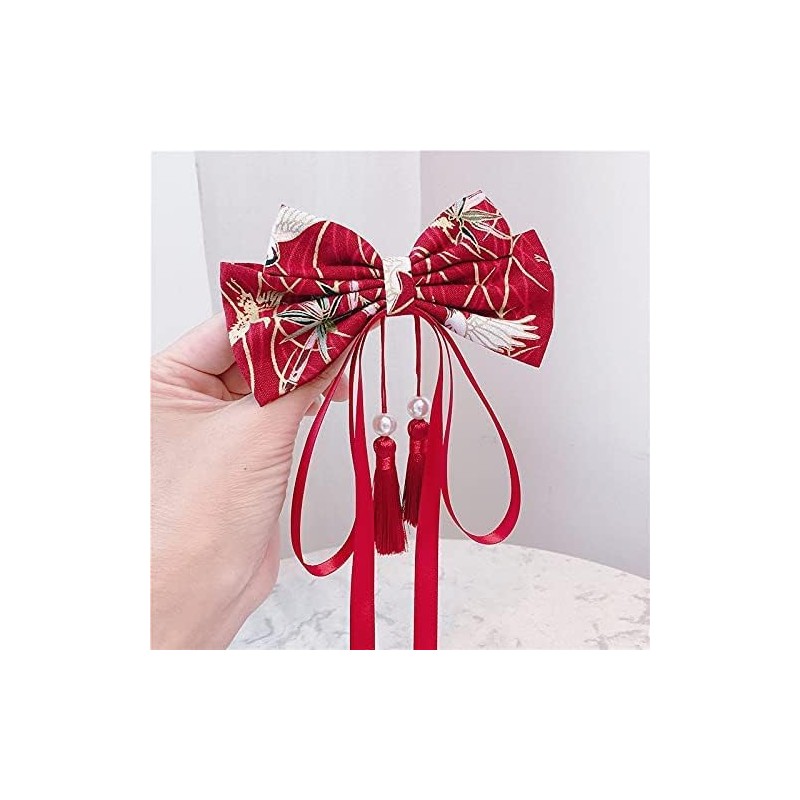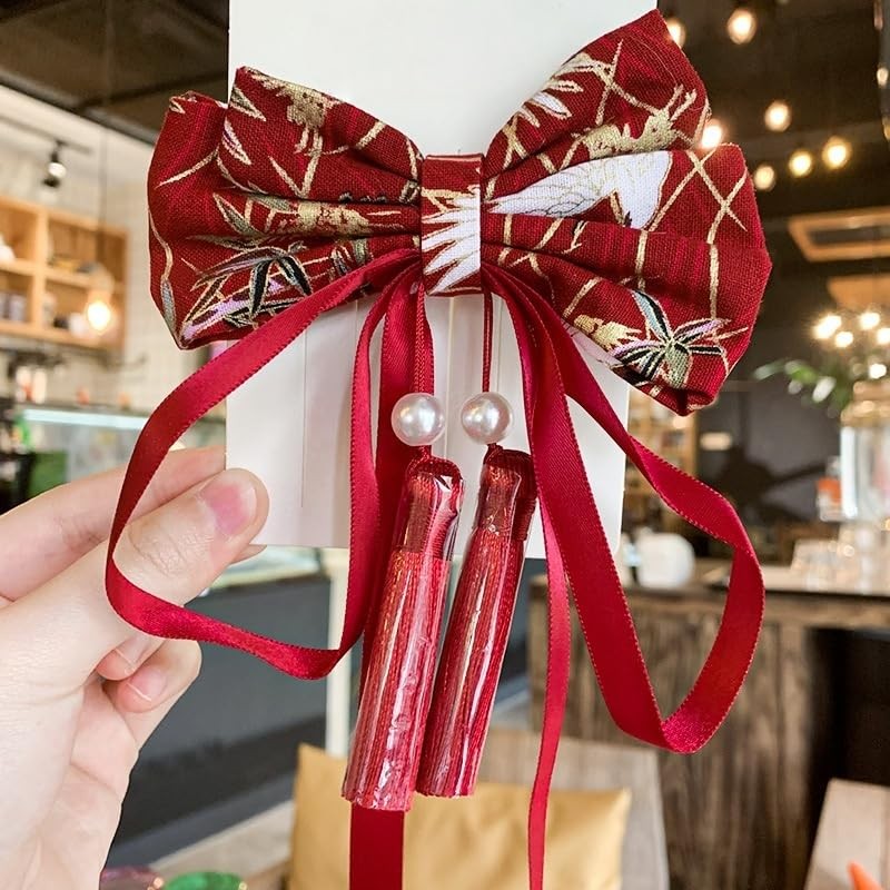 Hanfu Hair Accessories - Chinese Style Red Bows with Tassels Hair Clips, Traditional Hair Barrettes for Women & Girls, Festival Wedding Hair Ornaments