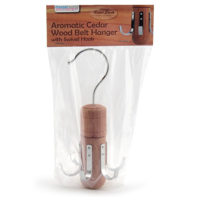 HANGERWORLD Swivel Belt Hanger Premium Cedar Wood Accessory Wardrobe Organiser Chrome Metal Hooks