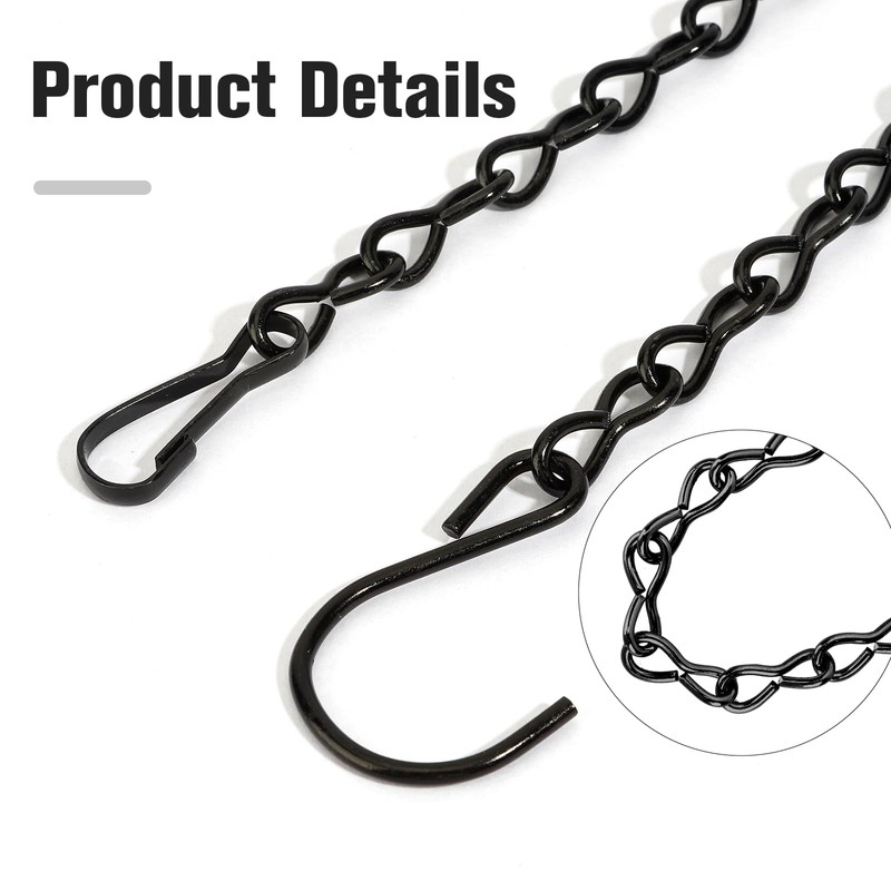 - 💐Easy to install and adjust: the chain is designed with user convenience in mind, the length can be adjusted by simply bending and removing the links to suit different heights for hanging feeders, flower pots, etc. The use of S-shaped hooks makes the hanging operation easier and faster.hanging basket hooks,black chain for hanging,strong hanging chain,hanging chain with clips