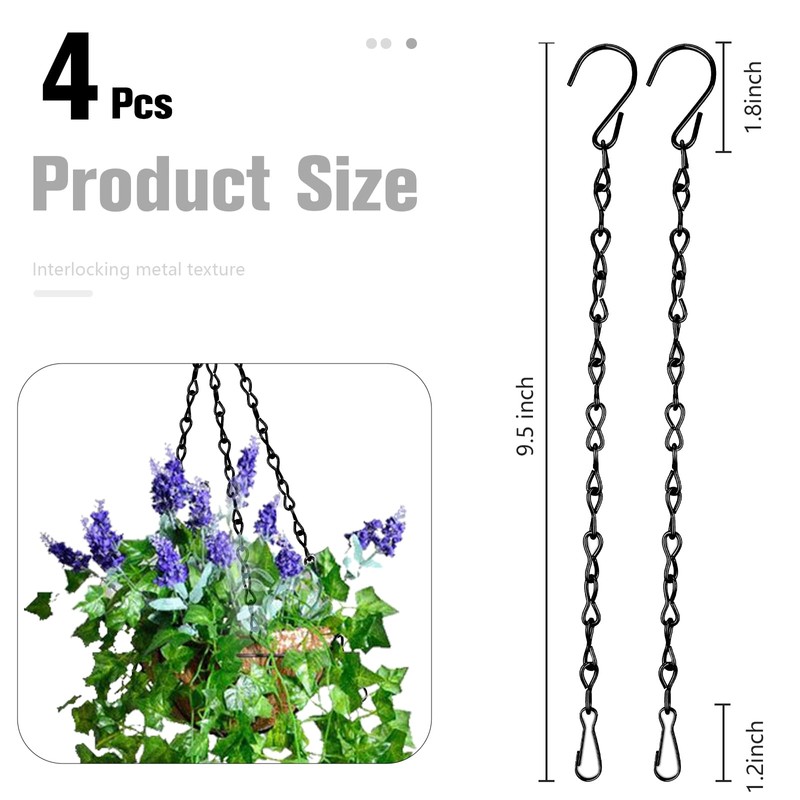 Hanging Basket Chains,Replacement Metal Chains For Hanging Basket Chains Heavy Duty Black Strong,Planter Chains Set With Clip&Hook 4pcs 9.5inch,Flower Basket Hanging Chain Diy For Outdoor Bird Feeder