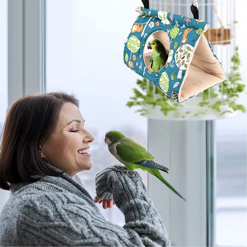 - Hole design: animal bird nests are half closed to keep the cold air plush warm and cozy. Our nests are designed open so that your parrot can get in and out easily. A soft and comfortable sleeping tent will save your bird stress and give it a sense of security.