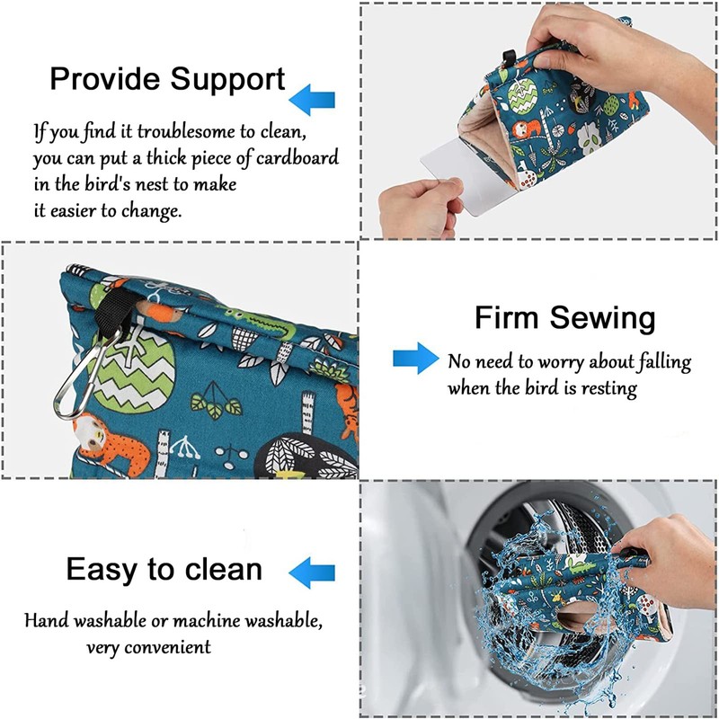 - HANGING The bird houses have two hooks on the top for easy hanging and easy assembly. They can be attached directly to the top of the cage or hung on a branch. Besides, our cotton bird hammocks can be easily cleaned by hand or machine.