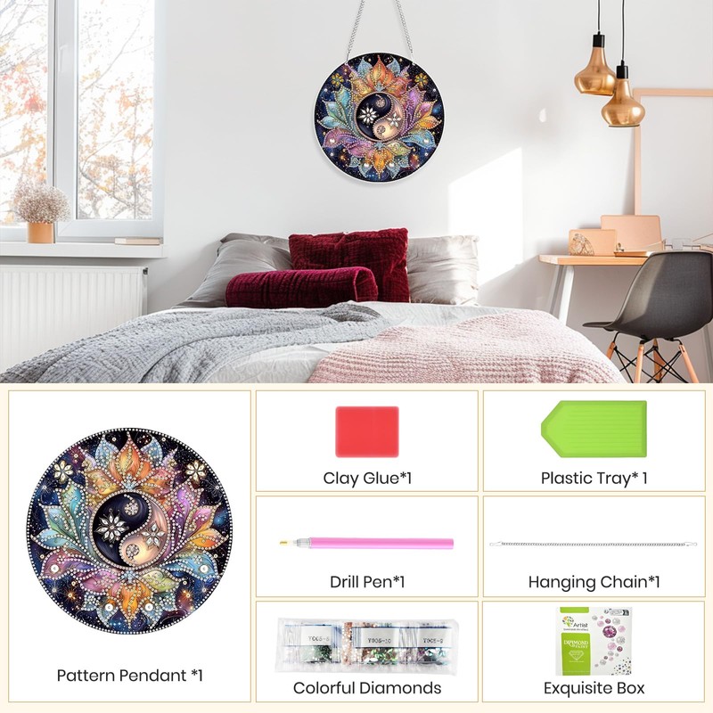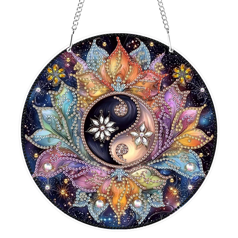Hanging Diamond Painting Kits for Adults, Yin Yang Flower Diamond Art Hanging Kits Pendant Ornament, DIY 5D Special Shaped Crystal Diamond Gem Art, Small Diamond Painting Kits for Wall Window Decor