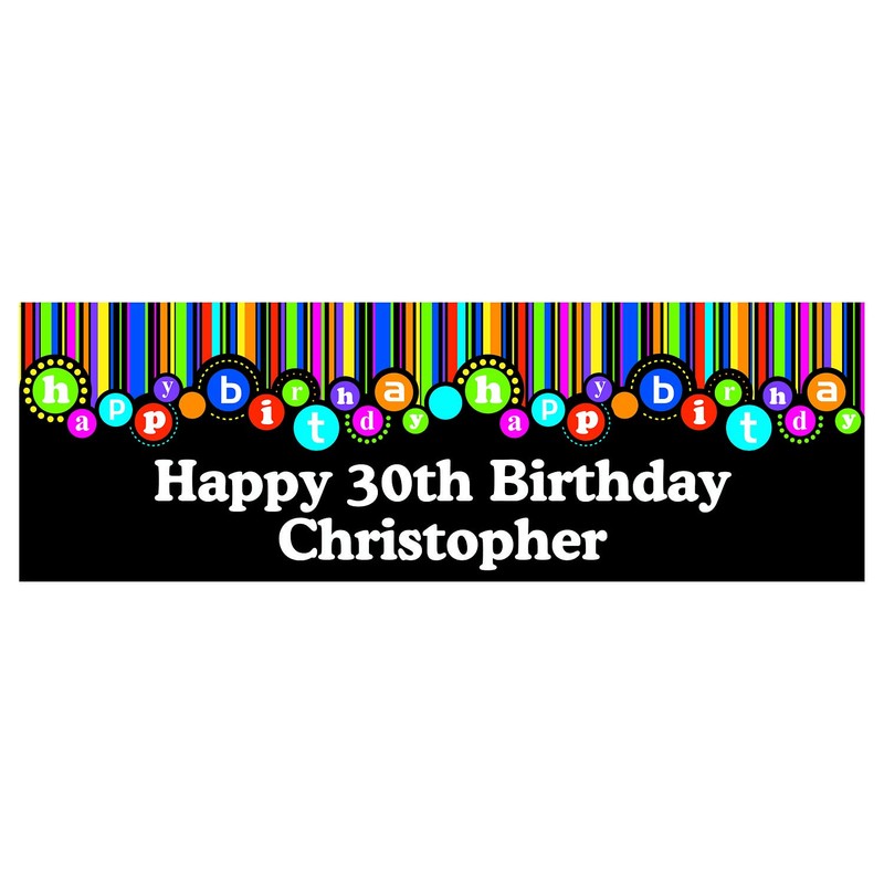 - These birthday dots will hit the spot! Great for any age, this colorful birthday banner is just the thing you need to kick off any birthday festivities.