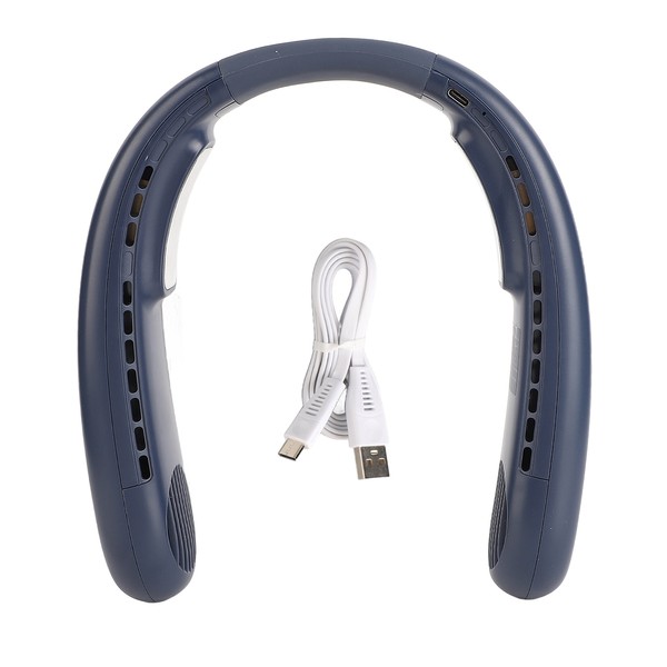 Hanging Neck Fans Portable Semiconductor Dual Cooling 3 Wind Speed Adjustable Mini USB Charging Neck Cooling Fan Blue