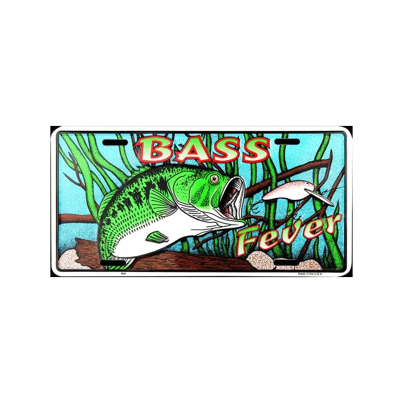 Hangtime Bass Fever 6x12 inch License Plate. 4 Universal slots for easy mounting. Embossed aluminum with baked on finish. Brand new - in factory shrink wrap. Proudly Made in the USA.