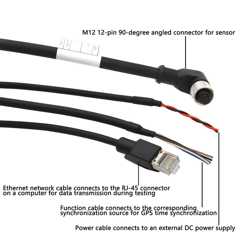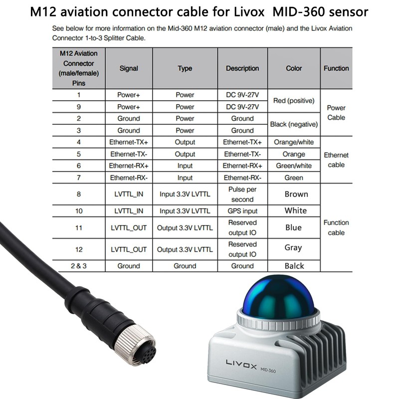 - M12 12 pin cable for DJI Livox LiDA sensor Mid-360 and HAP (TX), vision system sensor, barcode reader, camera of mobile robots, autonomous forklift, AMR robot, service robot, autonomous vehicle