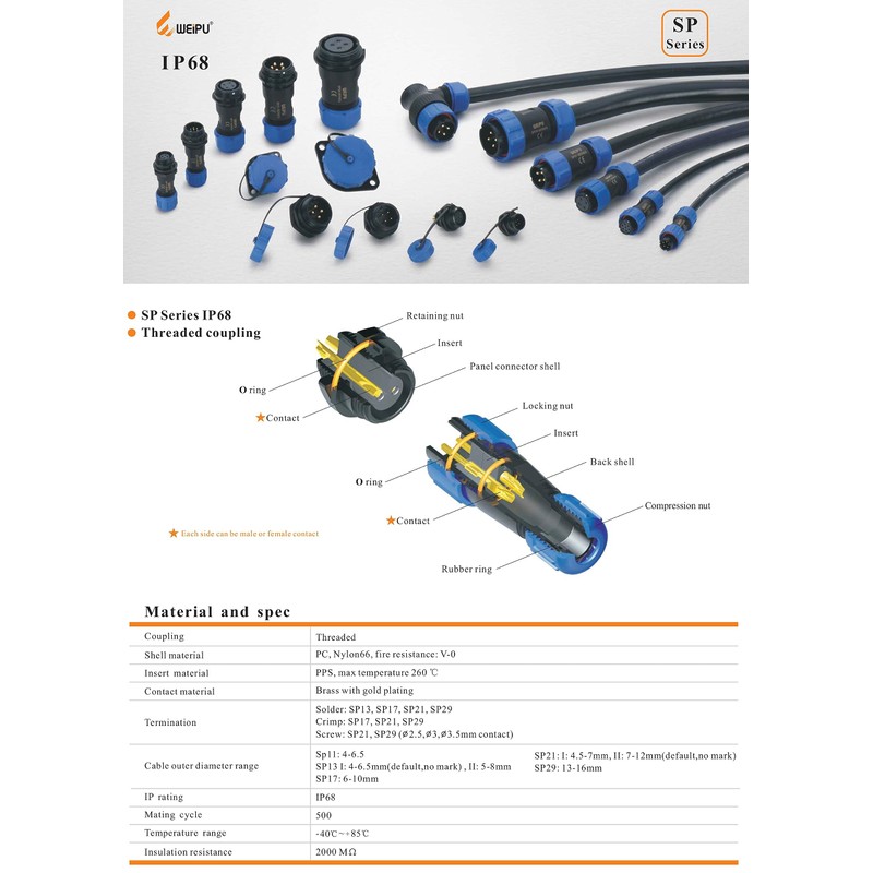 - WEIPU SP17 3-Pin Aviation Plug Round Waterproof IP68 Plug and Socket Hole Diameter 17 mm