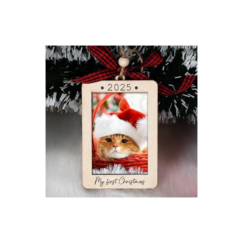 - Celebrate Your Cat’s First Christmas: Mark the joy of your kitten’s first holiday season with this delightful mini wooden picture frame ornament, featuring the phrase "My First Christmas." Suitable for cat first christmas ornament, cat ornament 2024, cat photo ornament, cat picture frame ornament