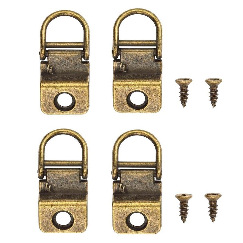 HangZ canvas flat mount wire 1-hole d-ring picture hangers hold up to 25-pounds. The HangZ 1-hole d-ring is the only d-ring to be completely hidden behind the canvas and open back frames. No exposed hardware and the pictures will never lean off the wall! Antique Brass finish for decorative look. Sold as a package containing 50 HangZ 1-hole d-ring picture hangers and screws. HangZ is committed to creating and building the best possible picture hanging hardware Company with the most innovative hanging solutions in the world. Making it easy for the professional, amateur, dyer and consumer to hang anything, anywhere at any time.