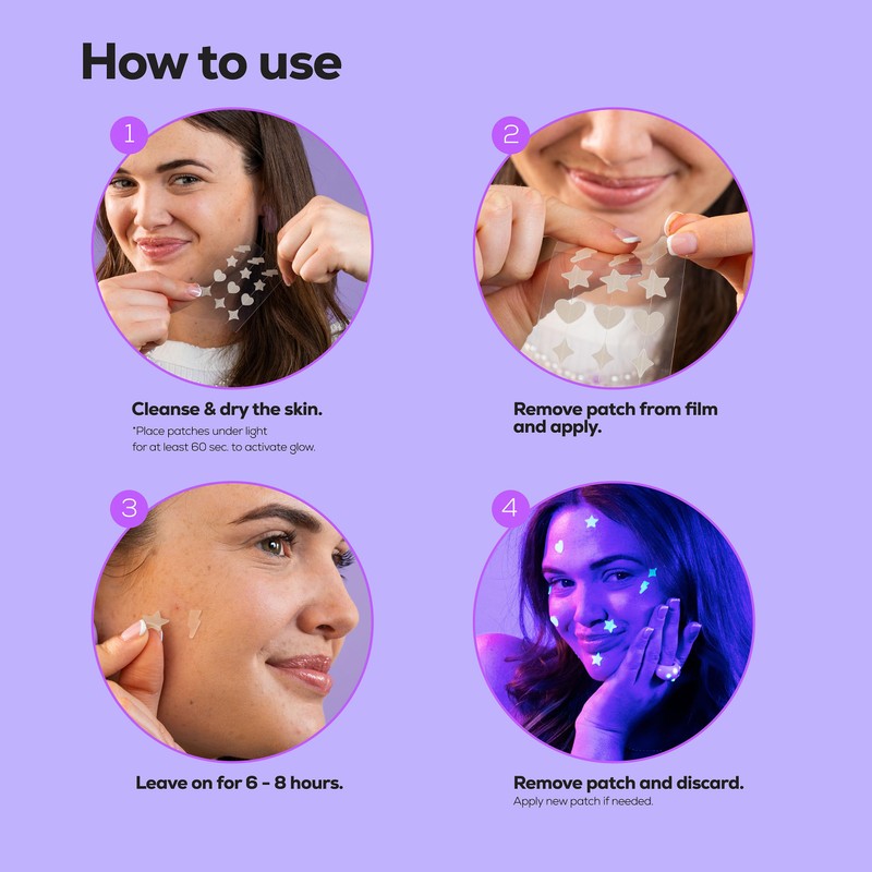Hanhoo Glow Blemish Patch, 24 Count, Glow in the Dark Pimple Patches, Multi-shaped Zit Stickers, Reduces Size of Blemishes, Acne Spot Treatment, Gentle Blemish Care, Korean Skincare