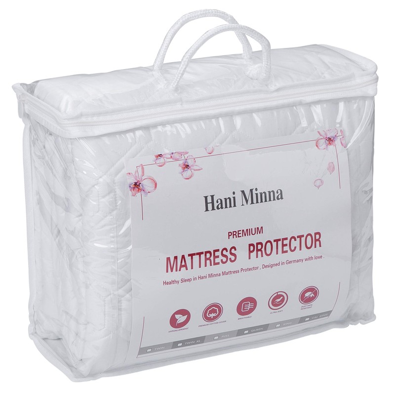 Maximum Softness and Comfort - Our Plush Siliconized Fibrefill Mattress Pad provides you with a heavenly sleeping experience. It has been made with loft polyester fiber fill that fluffs incredibly to give you cozy feel and most relaxing sleep. The skirt and cover is made of brushed microfiber and 100% natural combed cotton fabric that gives superior comfort against your skin. With this mattress pad, you can protect your mattress well, change the softness or firmness, or give yourself an extra layer of luxury to sleep on. Sitting on top of the mattress, under your sheets, it offers extra padding and comfort that could make all the difference to your quality of sleep. Suited for personal use or a guest bed, the high quality cotton mattress pad makes a versatile addition to your home. Breathable Surface – Hani Minna Bedding Quilted Mattress Pad is made keeping breathability in mind. It eliminates moisture and promotes conditions that are conductive to a peaceful and comfortable sleep. Care Instructions – Wash the mattress pad on a gentle or delicate setting with two rinse cycle, using cold water. Add a small amount of mild or all natural detergent. Too much soap can strip the pad, so be sparing. Dry the mattress pad in a large capacity dryer on the lowest temperature setting possible to avoid shrinkage or stretching of the elastic. This is take around 2 – 3 hours, but you want to make certain that the mattress pad is completely dry before putting to bed.