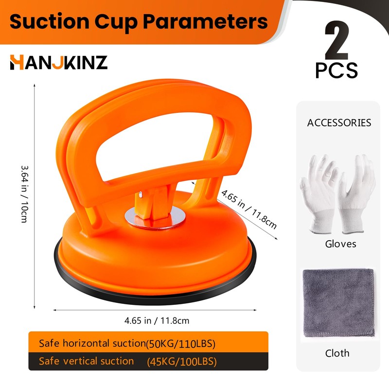 - Powerful Car Dent Remover: This car dent repair kit it comes with 2pcs large car dent removers (4.65 inches), safe horizontal suction (50kg/110lbs), safe vertical suction (45kg/100lbs). We also come with high quality gloves and duster cloth to make it as easy as possible for you to handle dents.