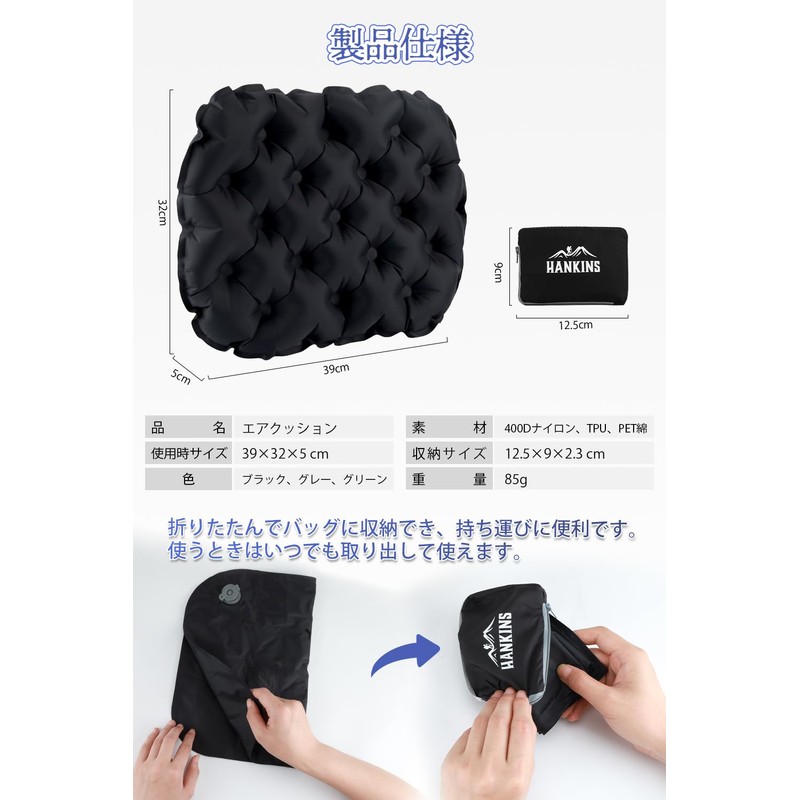 - Leisure sheet that can be used anytime: This easy to carry inflatable cushion has a folded size of 3.5 x 2.0 x 1.2 inches (9 x 5 x 3 cm), and weighs only 2.9 oz (85 g). Easy to carry in daily life, can be used in various occasions such as climbing, fishing, camping, night buses, airplane travel, etc