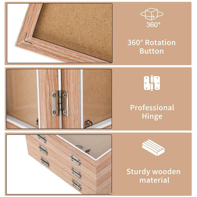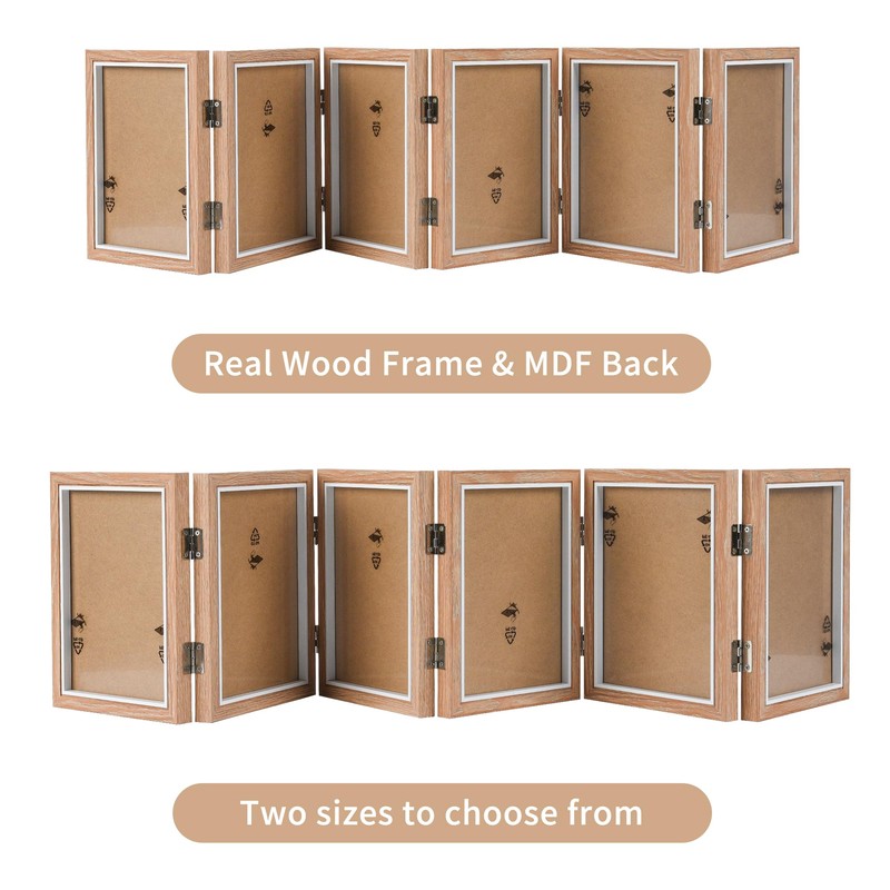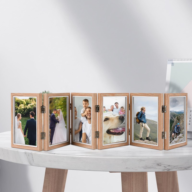 ATTRACTIVE DECORATIVE FRAMES: A six-folding 4 "x 6" photo frame collage featuring a rustic style solid wood hinged frame, designed to protect and decorate beautiful photos will add fun to your home. It also serves as a vintage decoration to add style. Our rustic photo frame offers everyone a great way to capture treasured memories suitable for your home or office.