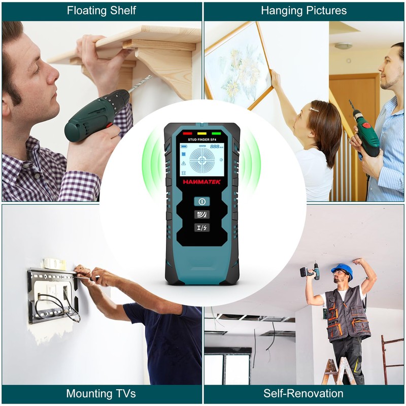 - Wide Range of Use: Versatile and reliable, this stud detector quickly locates wood, metal, and AC wires in walls, floors, and ceilings. Ideal for installing TV mounts, photo frames, wall cabinets, garage racks, shelves, bathroom handles, and other decorations with ease.