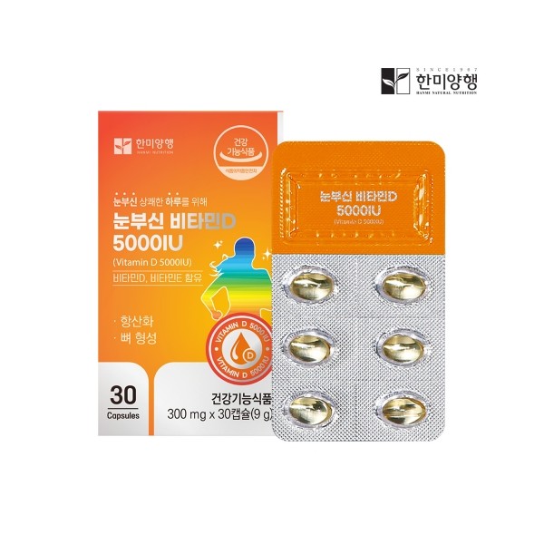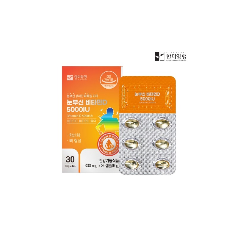 Hanmi Yanghaeng Dazzling Vitamin D 5000IU 300mg 30 Capsules / 한미양행 눈부신 비타민D 5000IU 300mg x 30캡슐