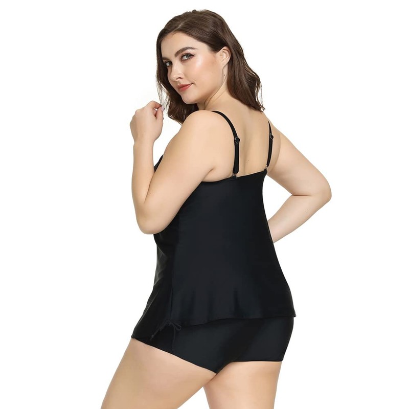Hanna Nikole Tankini Women's Large Sizes Tummy Control Swimsuits Two Piece Swimwear with Shorts, black