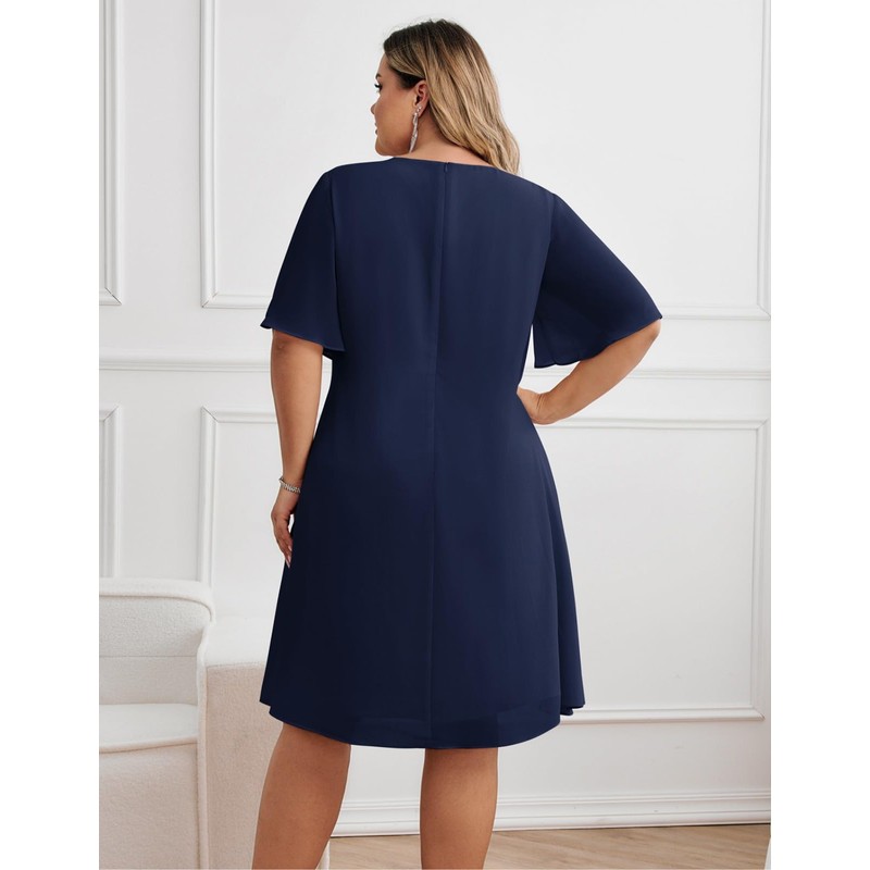 - Feature: This plus size wedding guest dresses features a sequined crew neck and short flutter sleeves, with a concealed back zipper closure for easy to put on or take off, hugs your curves while maintaining a flowy, beautiful appearance.