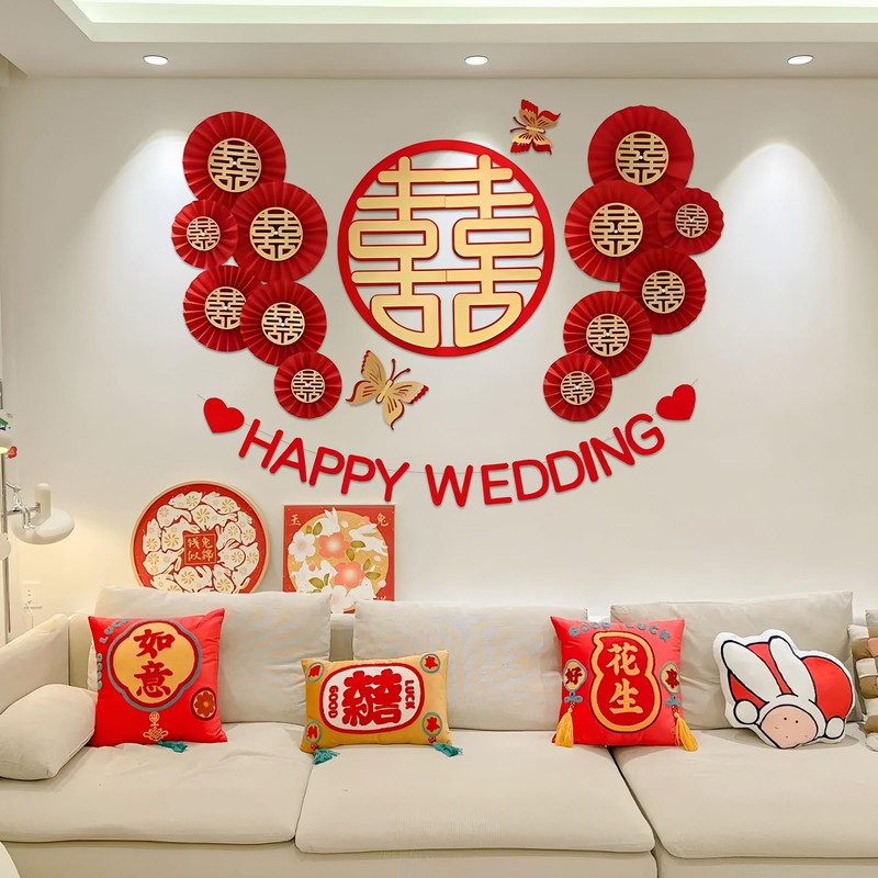 - Complete Wedding Room Décor Kit – Includes double happiness cutouts, magpie and flower garlands, and festive banners to instantly transform your space with traditional Chinese wedding charm.