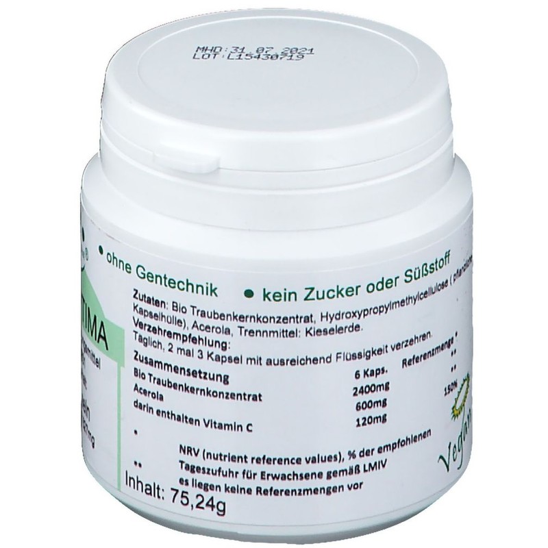 OPC Optima C Vegi Capsules is a highly concentrated organic grape seed extract paired with the vitamin C of the acerola cherry as an optimal dietary supplement.