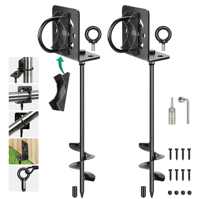 - Wide Application: Perfect for securing trampolines, mobile homes, sheds, swings, fences, sunshade poles, dog anchors, carport and soccer goals. These ground anchors are ideal for your outdoor needs, ensuring stability in any weather