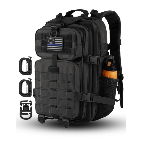Hannibal Tactical 30L MOLLE Assault Pack, Tactical Backpack Military Army Camping Rucksack with Bottle Holder, 3-Day Pack, Black