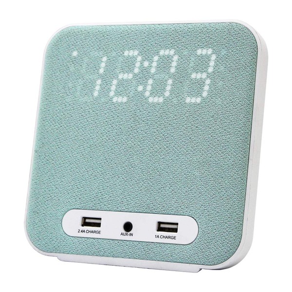 HANNLOMAX HX-145CR Alarm Clock Radio, PLL FM Radio, Digital Clock with Dual Alarm, 2 USB Ports for 2.4A and 1A Charging, Aux-in, AC Power Operation only. (Green)