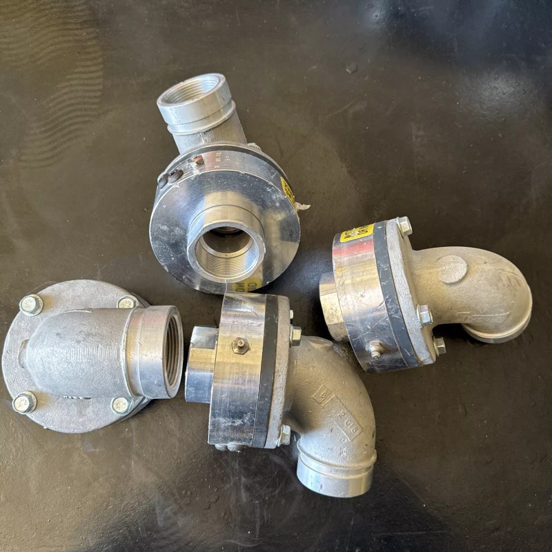 The Hanny Rotary Joint HJ90 is a cap fitting made of aluminum with a 1 1/4 inch diameter on all ends. Specifically, it features a 1-3/4" x 2-1/4" FNPT size with a Zerk fitting for lubrication purposes. This rotary joint is designed for use in hydraulic, pneumatic, and plumbing systems, making it suitable for various industrial applications where threaded fittings are required. The HANNY brand ensures quality and reliability in fluid transfer systems.