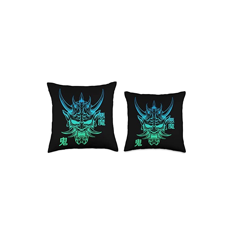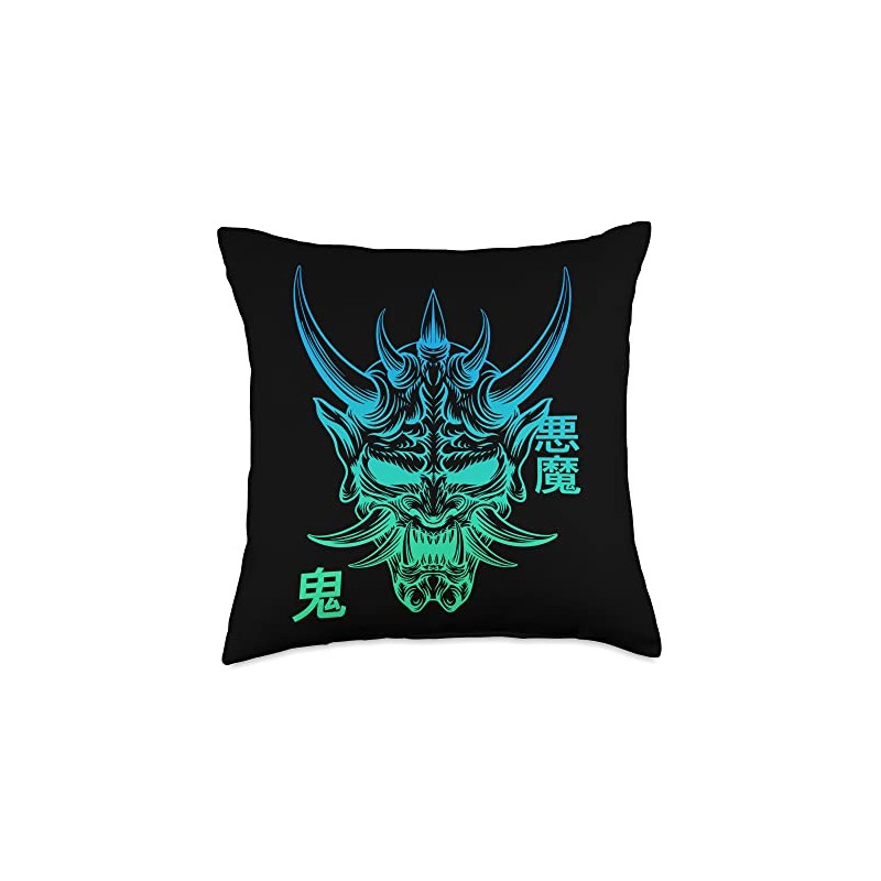 Hannya Oni Mask/ Japan Anime, Demon Warrior Mask, Throw Pillow