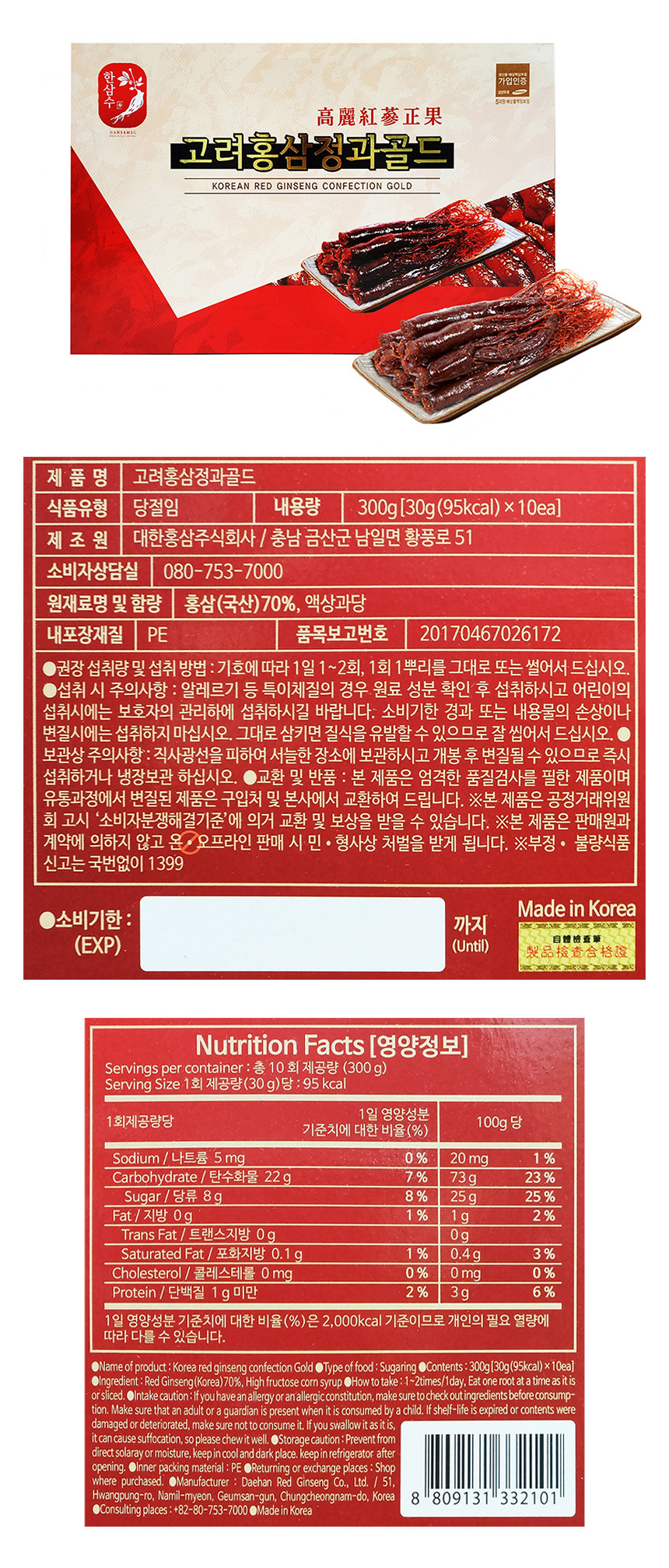 Hansamsu Goryeo Red Ginseng Gold Confection 300g