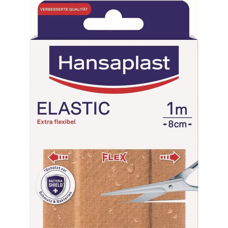 Hansaplast Elastic ist ein luftdurchlässiger, anschmiegsamer und zuverlässig klebender Wundschnellverband für kleine Verletzungen speziell an viel bewegten Körperstellen und Gelenken. Hansaplast Elastic besteht aus einem querelastischen Gewebe mit Vlieswundauflage. Hansaplast Elastic ist erhältlich als Fingerkuppenpflaster, Fingerstrips sowie als latexfreie zuschneidbare Meterware.