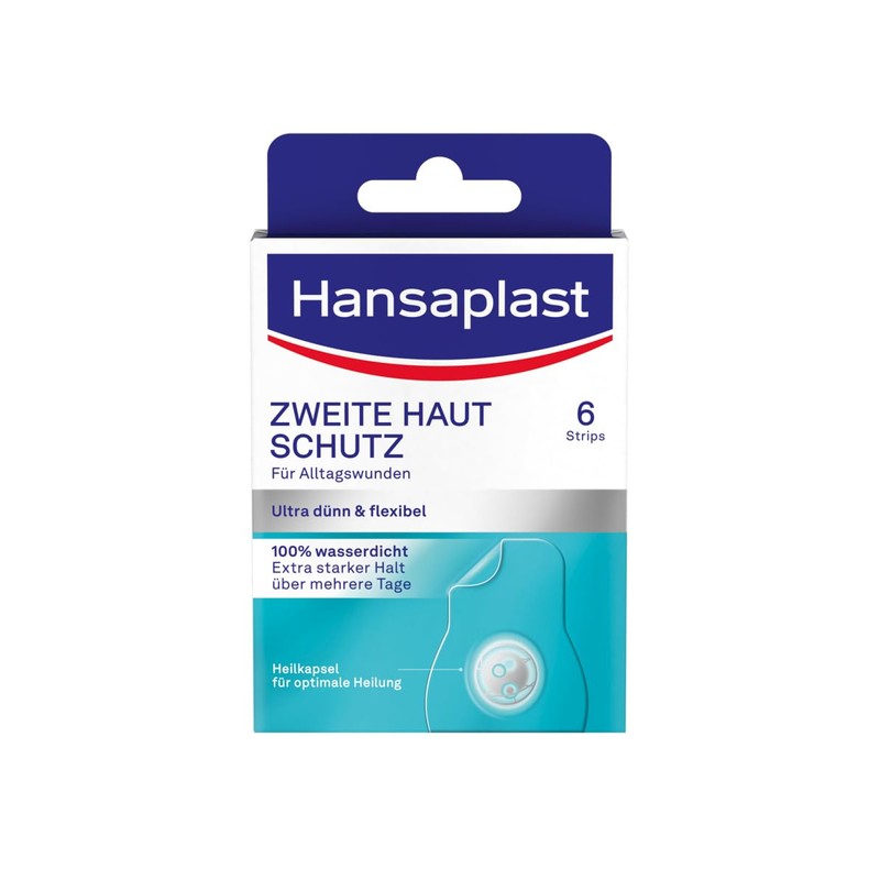 Hansaplast Plaster Second Skin Protection Regular (6 Strips), Thin and Flexible Hydrocolloid Plaster with Healing Capsule Technology, Waterproof Wound Plaster with Extra Strong Hold for at least 72