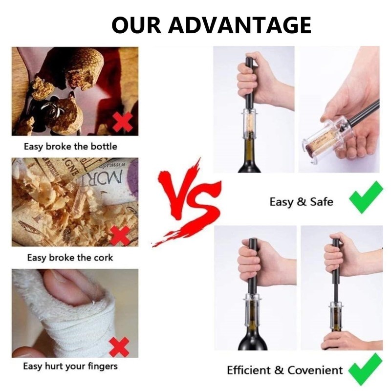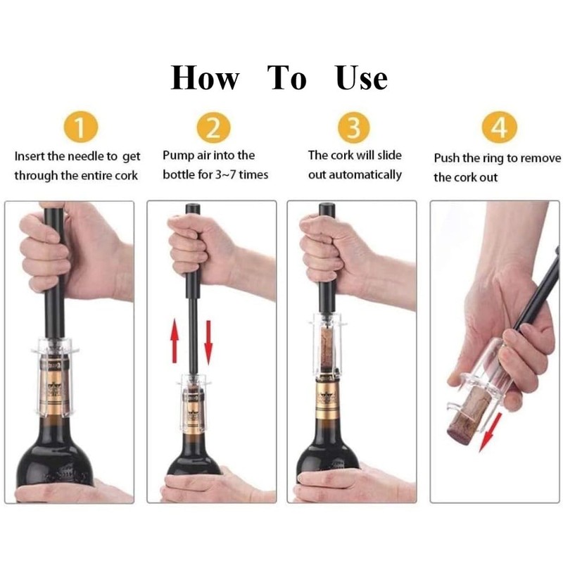 • 4. Ease of Use:Super simple, even for beginners. To open a bottle: insert the pump’s needle into the cork, pump 6 - 8 times until the cork releases. Attaching the pourer is instant—just slide it onto the bottle neck. No messy cork crumbs, no spills. Cleaning is a breeze too—rinse the pump under water and wash the pourers with water. Spend less time on prep, more time savoring your wine.