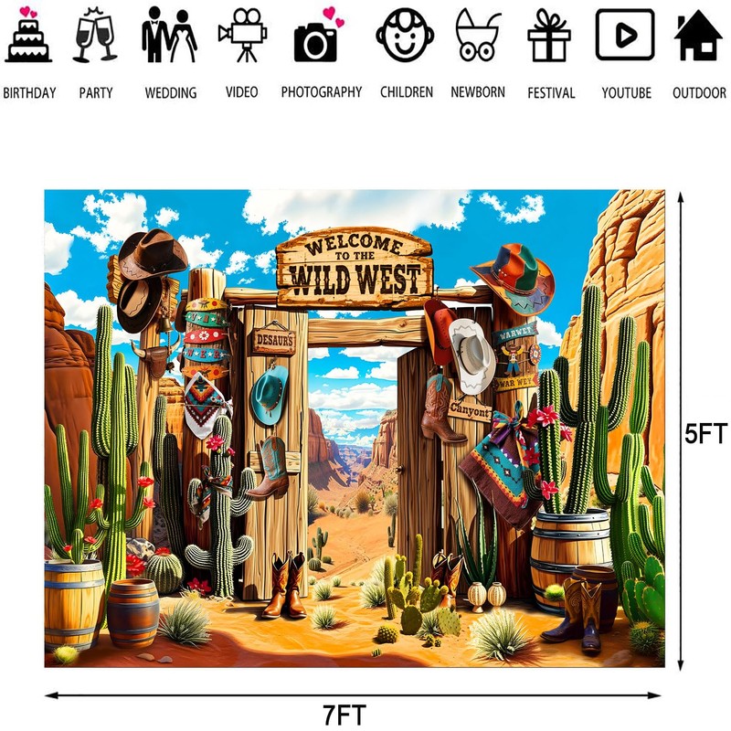 HANSHUAI Welcome To The Wild West Backdrop Western Grand Canyon Desert Cactus Photography Background Kids Cowboy Theme Baby Shower Birthday Party Decoration Banner Photo Booth Studio Prop 7x5ft FU04YL