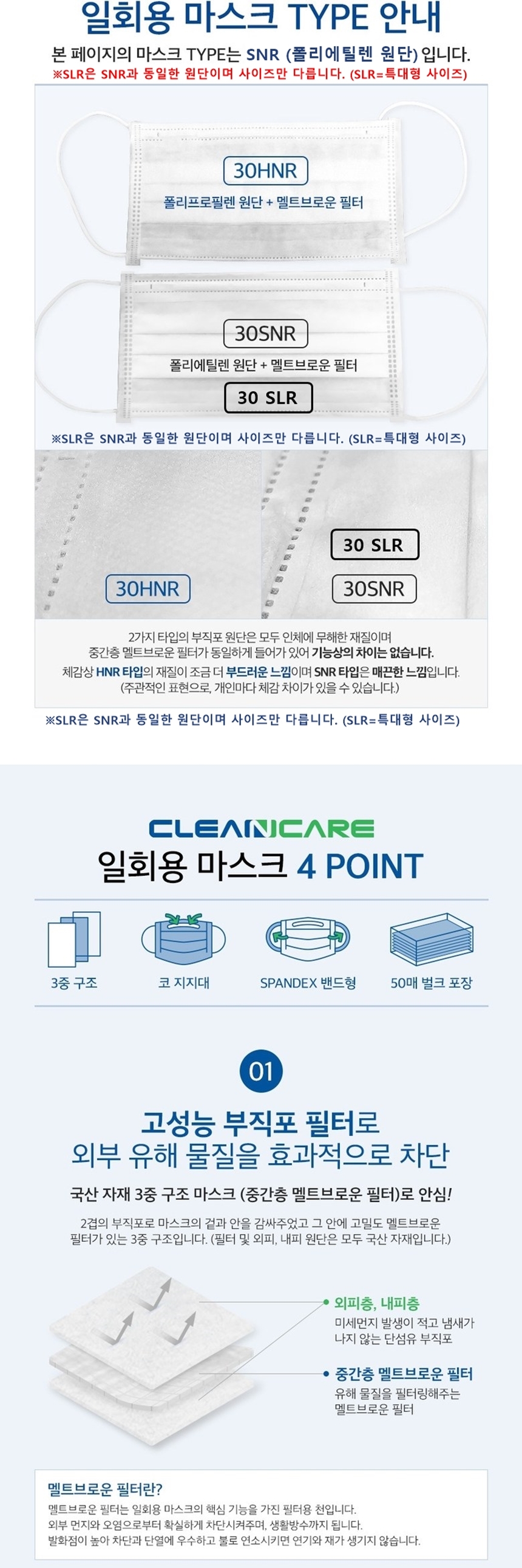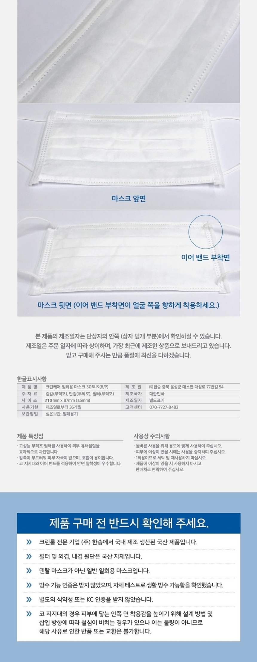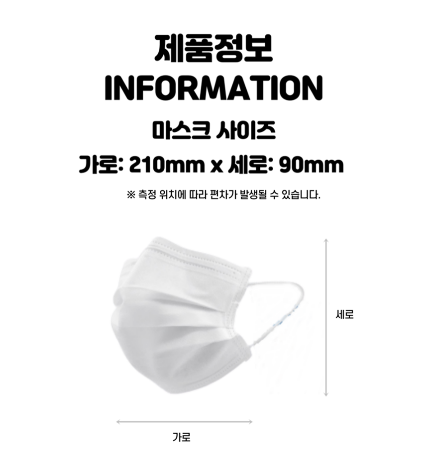 Hansong Clean Care Extra Large Disposable Mask 50 Sheets Width 210mm Extra Large Simple Big Size / 한송 크린케어 특대형 일회용 마스크 50매 가로 210mm 초대형 얼큰이 빅사이즈
