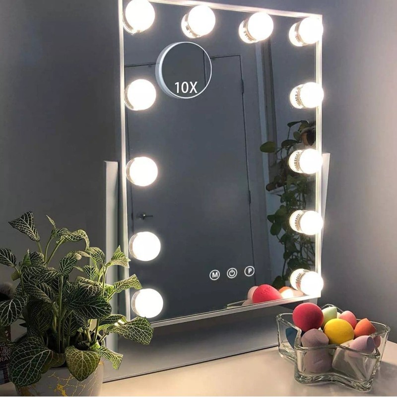 - 3 Color Lighting ModesTouch screen but very easy to use, the light up makeup mirror has 3 different light settings that can choose from warm lights, daylight and cool lights and also can be made brighter or dim. 12 high-quality LED bulbs have soft and eye-protected lights and can last for 50,000 hours.